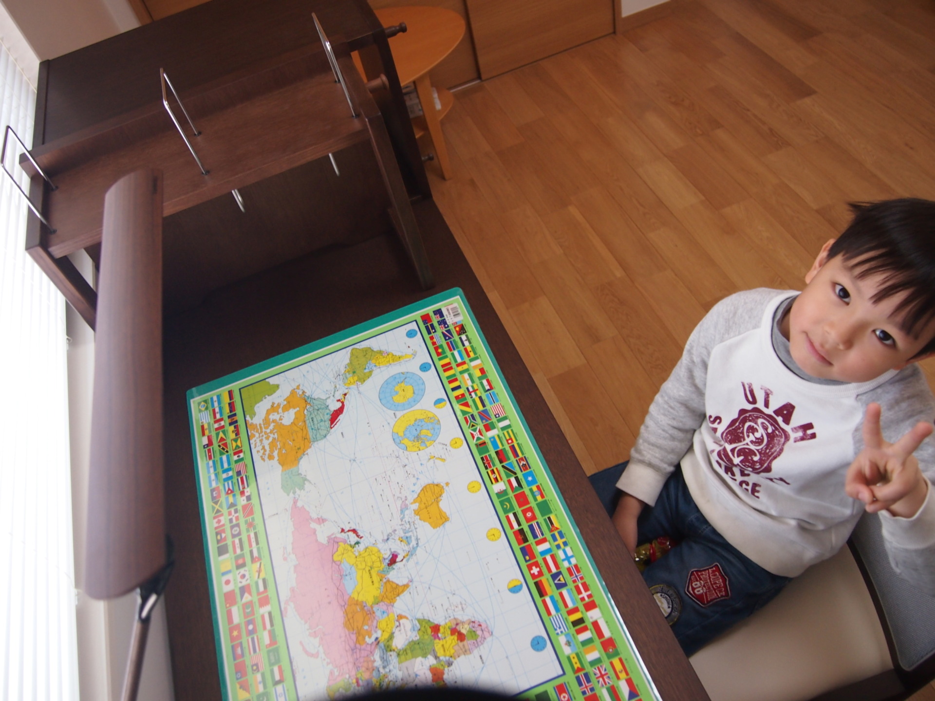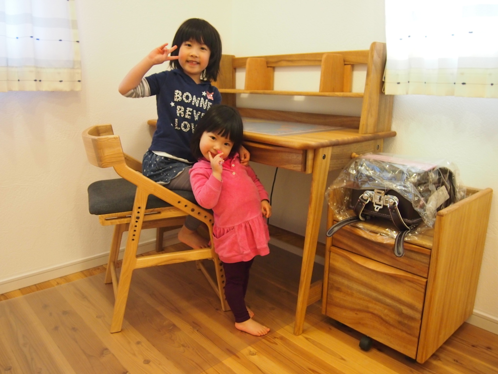 お友達が遊びに来ていて、新しいデスクを