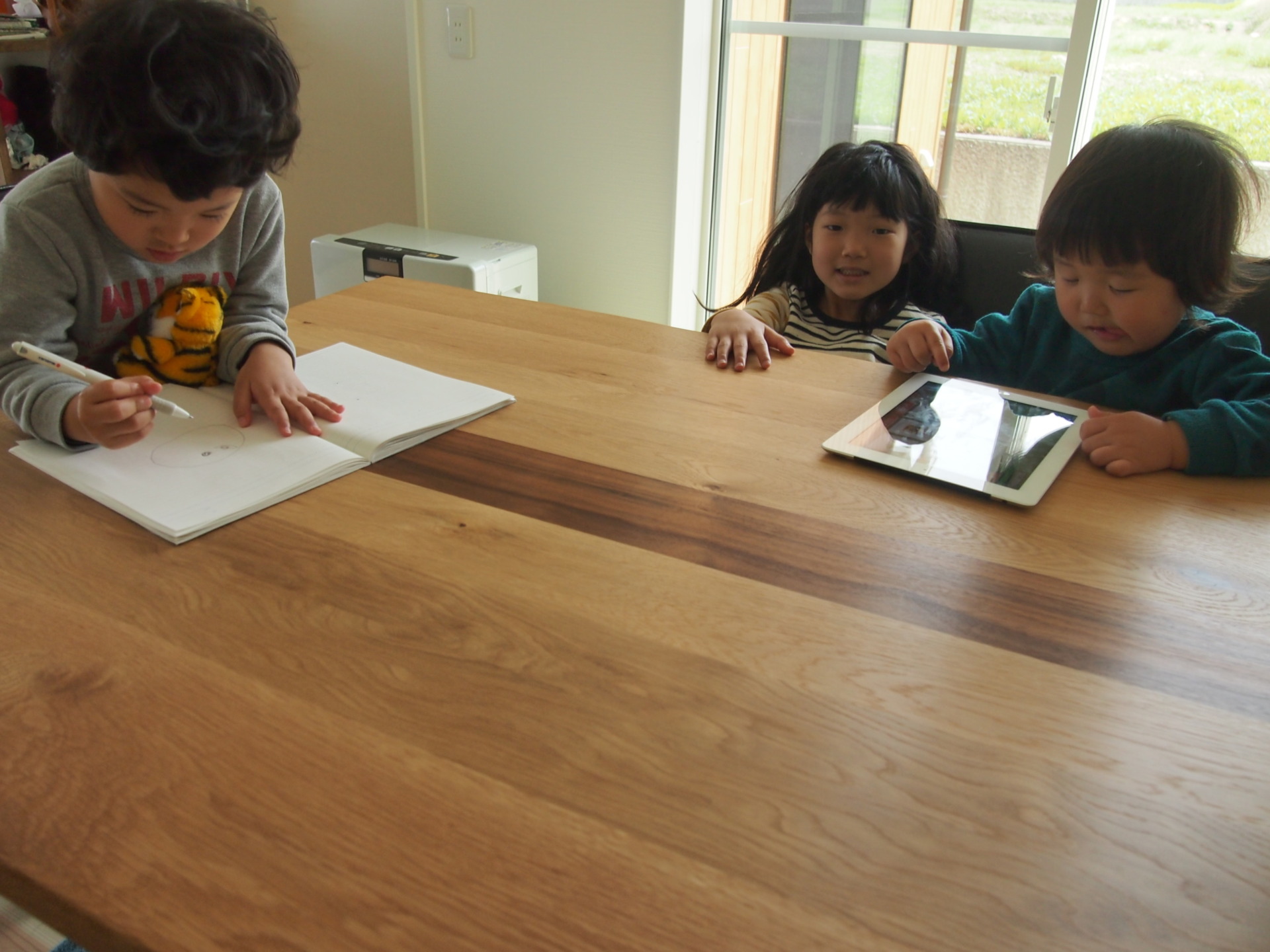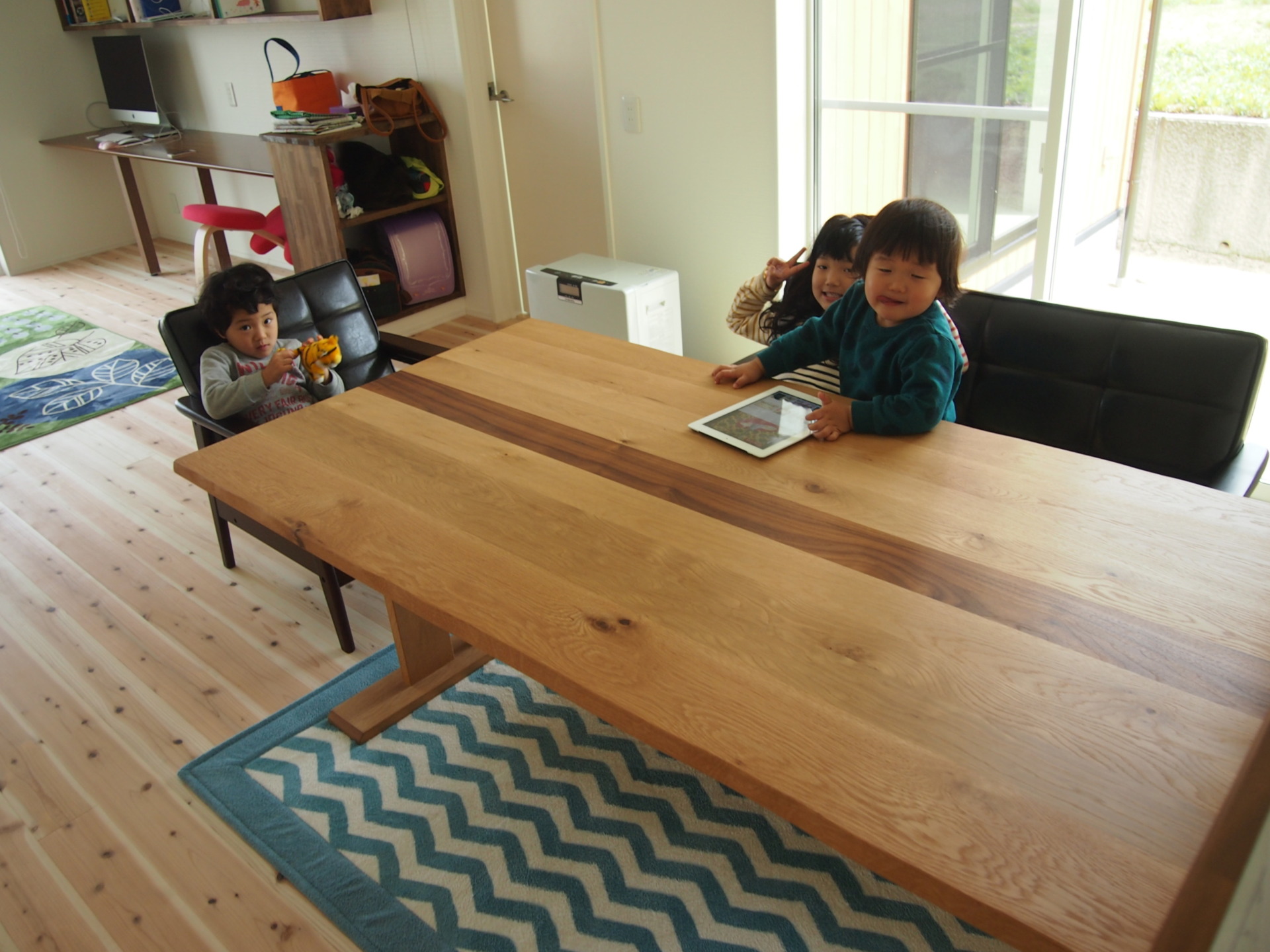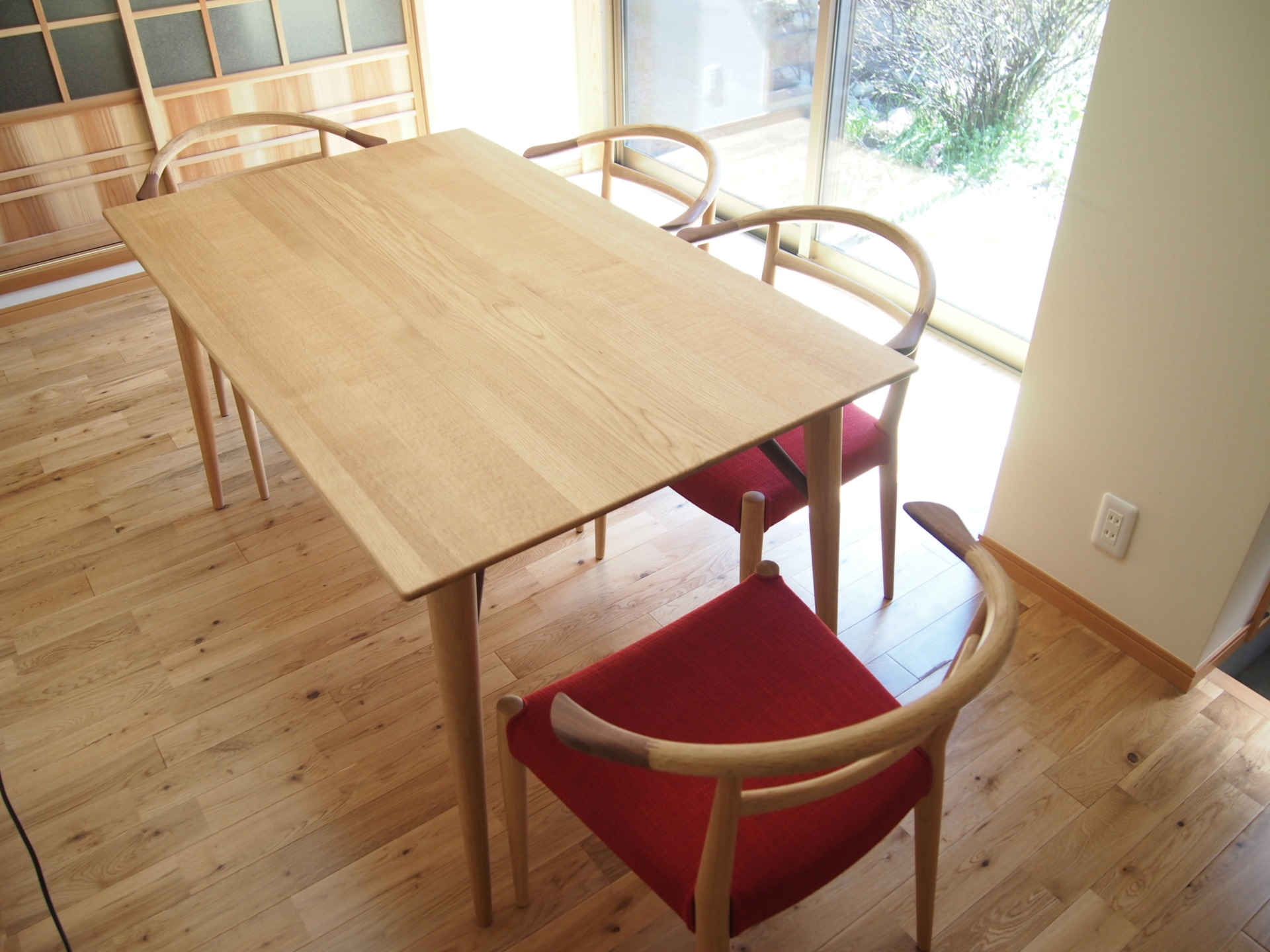 鳥取市の新築のM様邸に、柿しぶの郷の4本脚テーブルと