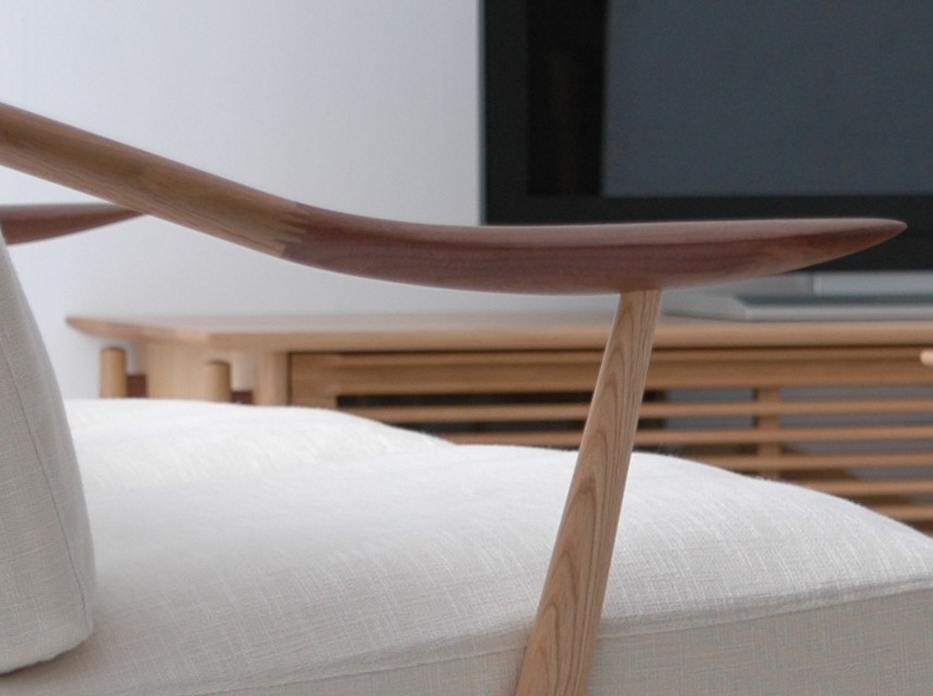 ↑アームの先端にあしらわれたウォールナット材がいいアクセントになっています。