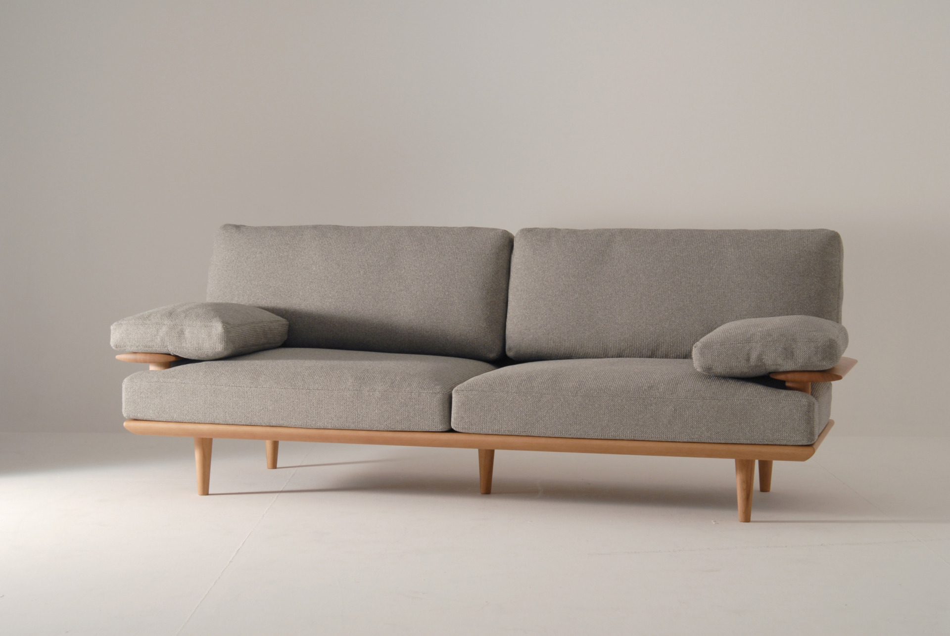 座面高に近い肘は、クッションを枕にして寝るのにちょうどいい高さになっています。