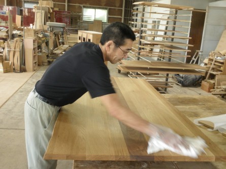 ホワイトオーク材に柿しぶの塗料を塗っているシリーズになります。(こちらが、柿しぶの塗料を塗っているところです。)