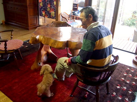 お父さんとトイプードルのハチ子(オス)。