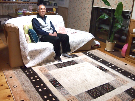 2012.11.29<我が家のギャッベ>鳥取市 T様のギャッベ カシュクリ 241×169cm リビングの中心に敷いて頂いたナチュラル色のギャッベ。 T様邸の為に作ったのかとおもうくらいぴったりでした。