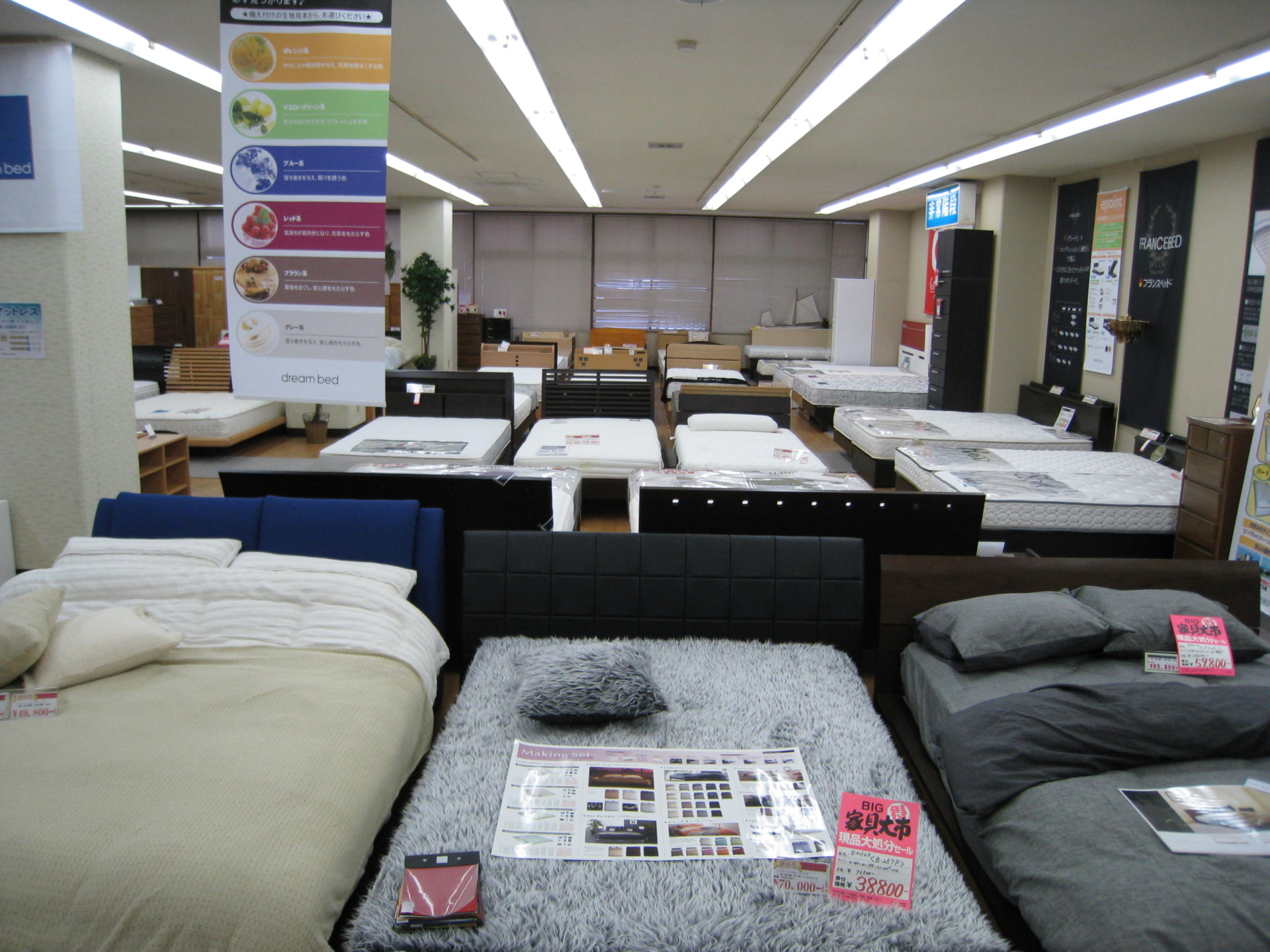 ベッドもたくさん展示しています。一日の疲れを癒す大切なベッド。