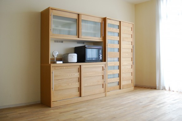 家電が隠せるタイプの食器棚も作っています。